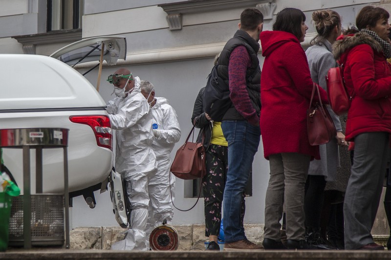 Dr. Valić iz Kriznog stožera potvrdila je kako je dezinfekcija provedena već ujutro i kako su ispitani svi kontakti: "Građani su razumno zabrinuti. Svi koji su bili u kontaktu idu u samoizolaciju, ostaju u vlastitom domu i mjere temperaturu dva puta dnevno. Odrađena je preventivna dezinfekcija prije dolaska djelatnika na posao. Kretanje suspektne osobe je bilo opsežno i danas ćemo sve osobe koje su bile u kontaktu staviti u zdravstveni nadzor. Kada se kontakt razboli njegovi ukućani stavljaju se pod nadzor." izjavila je dr. Valić na presici Stožera.