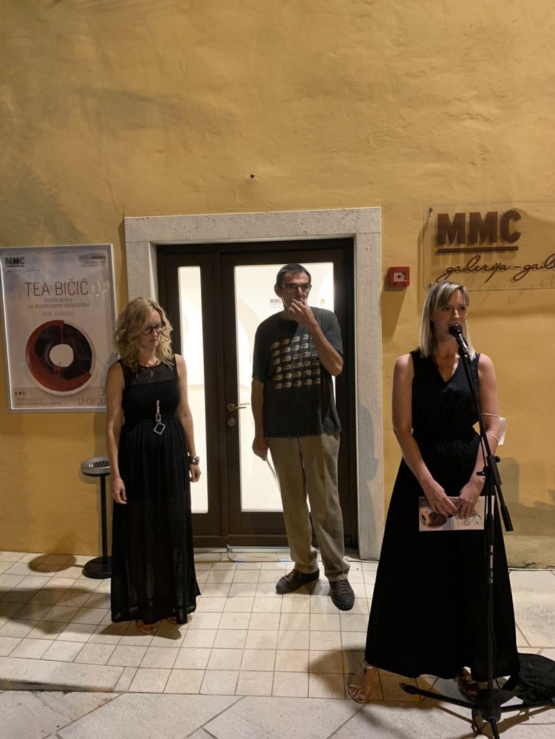U srijedu navečer u MMC galeriji Grada Umaga Tea Bičić predstavila je svoje recentne radove. Izložbu su u prisustvu autorice otvorili voditeljica galerije Sanja Benčić i autor predgovora kataloga Eugen Borkovsky.