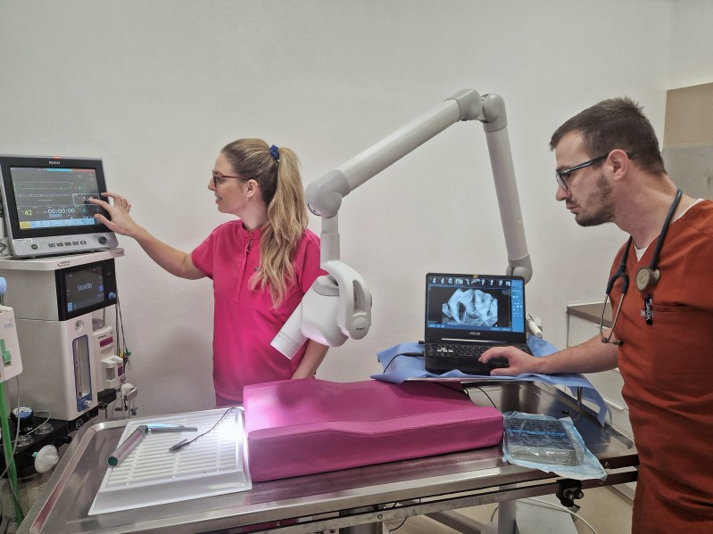 Jedna od najvećih prednosti ambulante Flexi Vets je njihov dentalni rendgen, koji omogućava detaljan uvid u stanje zuba ljubimaca. „Mi sve zube radimo u inhalacijskoj anesteziji, što je sigurnije za životinju. Endotrahealni tubusi štite dišne putove, a uz pomoć rendgena možemo odmah vidjeti je li neki zub potrebno izvaditi ili liječiti“, objašnjava Tea.