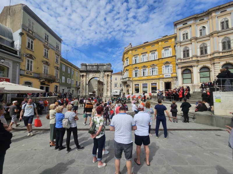 Tradicionalno obilježavanje 1. svibnja u Puli održalo se na Portarati, od ranog jutra, građani su mogli uživati u bogatom programu koji je započeo uz Puhački orkestar grada Pule, KUD Matko Brajša Rašan i KUD-SAC Lino Mariani. Održano je i tradicionalno polaganje vijenaca.