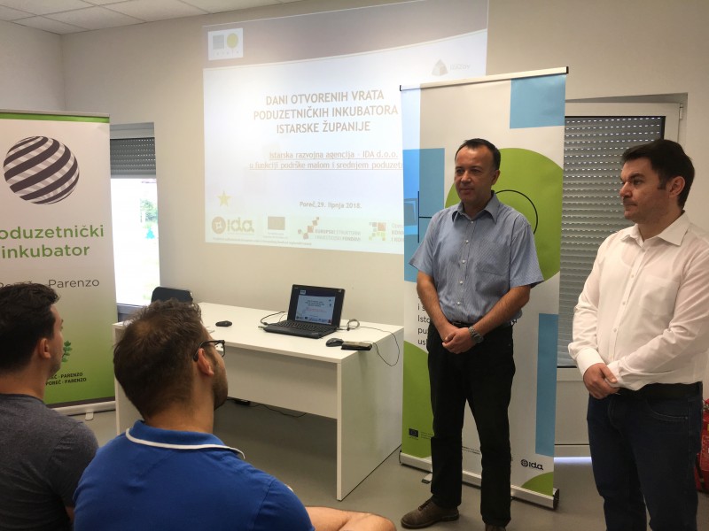 Dani otvorenih vrata poduzetničkih inkubatora Istarske županije organizirani su u sklopu IDA-inog EU projekta „Stimuliranje rasta malog i srednjeg poduzetništva Istarske županije putem visokokvalitetnih usluga podrške - HQ_ISTRIA", ukupne vrijednosti 600.000 kuna, koji se sufinancira iz