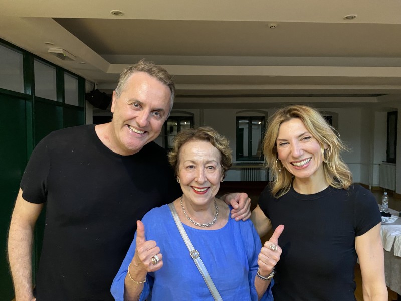 Nakon predstave u emotivnom susretu s glumcima čestitala im je na izvrsnoj glumi.