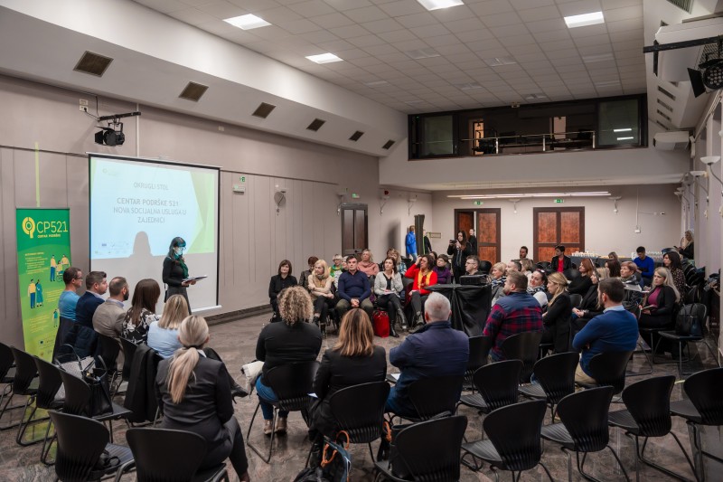Nakon kratkog predstavljanja projekta, Antonio Matković iz Instituta za razvoj tržižta rada predstavio je program i protokol rada Centra podrške 521 te izložio koje sve usluge i aktivnosti centar pruža. Ovo je jedinstven primjer ovakvog centra na ovim prostorima i ideja je izašla iz istinske potrebe te predstavlja ideju i model socijalnog upućivanja prepoznat u svijetu.