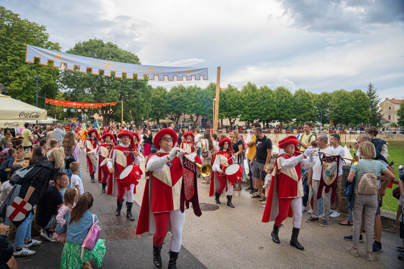 Na placi dočekat će vas razni izlagači i upoznati sa starim zanatima, srednjovjekovnom tiskarom, pa čak i fresko-slikarstvom. Dodatni srednjovjekovni duh doživjet ćete kroz glazbene nastupe Holloenek Hungarice iz Mađarske, a svakako pripazite na ulične zabavljače „Li Brutti“ s kojima nikad ne znate što očekivati! U kaštelu Morosini-Grimani imate priliku okušati se u streličarstvu ili pak isprobati hod na štulama, a moći ćete pogledati i turnir u bohurtu!
