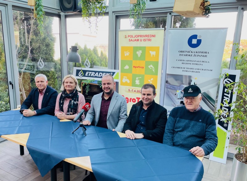 U travnju 2024. godine održat će se međunarodni poljoprivredni sajam u Istri pod nazivom AgroTerra Istra. Nositelj organizacije sajma je tvrtka Mars eventi d.o.o. uz podršku Grada Pazina. Danas je na konferenciji za medije najavljena ova manifestacija, a predstavnicima medija obratili su se: direktor sajma Marko Londero, gradonačelnica Grada Pazina Suzana Jašić, pročelnik Upravnog odjela za poljoprivredu, šumarstvo, lovstvo, ribarstvo i vodno gospodarstvo Istarske županije, dr.sc. Ezio Pinzan, predsjednik Ceha za poljoprivredu Obrtničke komore Istarske županije Dean Matić i Armando Miljavac, vlasnik tvrtke Etradex iz Pazina – izlagač na sajmu. Zahvaljujemo se suradnji i tvrtki Pazin sport d.o.o. u čijoj će se dvorani sajam održati u travnju 2024. godine.