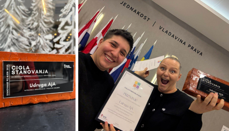 Udruga AjA dobitnica je nagrade Cigla stanovanja u kategoriji Organizacije i poslovni subjekti, čime je prepoznata kao jedan od najboljih projekata stanovanja u Hrvatskoj u 2024. godini. Riječ je o nagradi koja valorizira konkretne projekte usmjerene poboljšanju uvjeta stanovanja i stvaranju priuštivih, održivih rješenja.