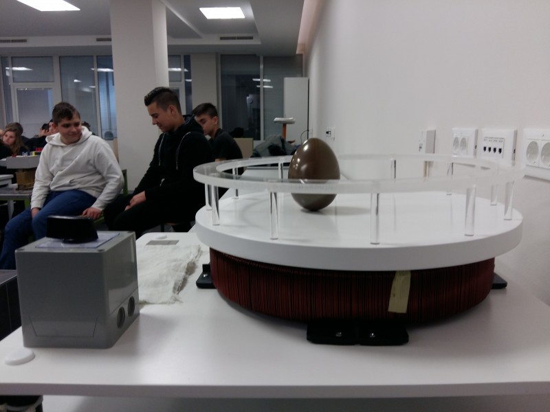 Tom su se prilikom upoznali sa laboratorijem iz elektrotehnike i elektronike te imali priliku vidjeti djelovanje okretnog magnetskog polja u pokusu „Teslino jaje“. Sanja Grbac Babić, predavačica na Politehnici demonstrirala je učenicima poznati pokus Nikole Tesle na replici izvornog uređaja. Ovim vidom terenske nastave potiče se povezivanje tehnike i stručnog obrazovanja sa ciljem što bržom primjenom znanja u praksi.