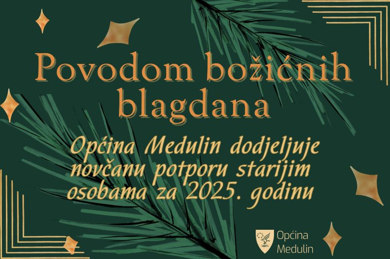 da se temeljem Zaključka Načelnika Općine Medulin od 22. listopada 2025. godine KLASA: 550-01/25-01/0020, URBROJ: 2163-27-01-2/1-25-4 odobrava isplata novčanog dodatka uz mirovinu ili jednokratne novčane pomoći starijim osobama bez prava na mirovinu povodom božićno - novogodišnjih blagdana kako slijedi: