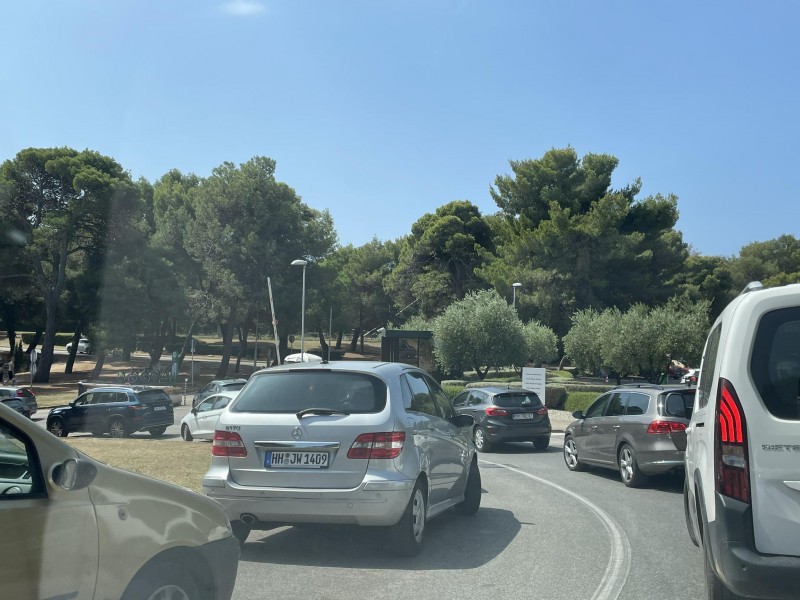 Svakodnevno dobivamo pritužbe u našu redakciju vezano za nepropisno parkiranje na nogostupu ili na cestici na ulazu na parkiralište popularnog naselja Punta Verudela. Prilaz samom turističkom naselju u ljetnoj sezoni je zakrčen parkiranim automobilima koji se nalaze posvuda. Imam ih na nogostupu, u grmlju pa i na samoj prometnici, što znatno otežava i usporava promet. Kako nam javlja naš čitatelj automobili redovno parkiraju na lijevoj strani kružnog toka i prema rampi na ulazu u kompleks Verudele te tako zakrčuju promet i stvaraju gužve. Naime, lijeva strana bude puna automobila koji su nepropisno parkirani te zbog njih kružni tok nije protočan i onemogućava se normalan prolaz mnoštvu vozila koje se kreću ovom prometnicom.