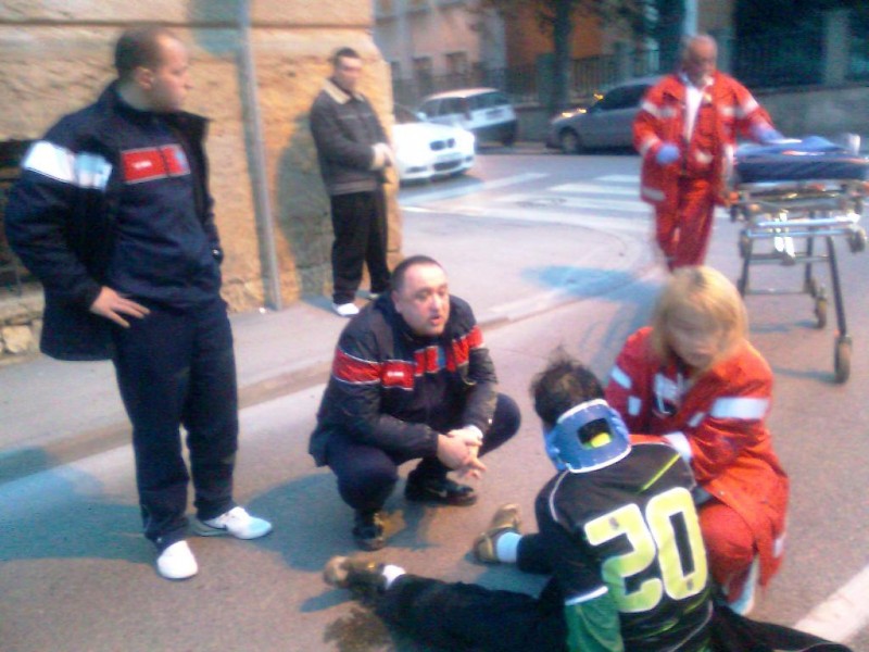 Odmah nakon udarca među prvima unesrećenom pješaku pomoć su pružili liječnici NK Osijeka koji su iz daljine primjetili nesreću te su do dolaska Hitne medicinske pomoći (3 minute) pružali i sami pomoć unesrećenom. Iako je pješak završio na šofer šajbi automobila, tažina ozlijeda nije poznata a više će se znati nakon obavljanja pretdraga u Općoj bolnici Pula gdje je Hitna pomoć prebacila ozlijeđenog navijača. Rex/Dorijan Vrkljan
