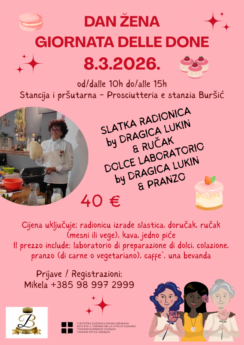 Ne propustite priliku da Dan žena provedete u ugodnom ambijentu Stancije Buršić, uz vrhunske slastice, druženje i istinsku gastronomsku inspiraciju!