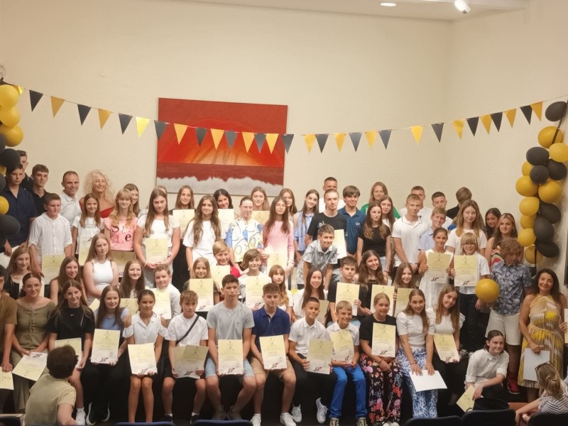 Učenici koji su ostvarili uspjeh 5.00 tijekom svih šest razreda osnovne glazbene škole su Vita Banovac, Antea Blažević, Julia Brajković, Petar Brajković, Laura Černjul, Matija Gluhić, Klara Gulić, Leona Janko, Emili Jurcan, Leo Jurković, Ava Asia Kanceljak, Eva Korlević, Chiara Mačinić, Armin Mešić, Jona Emilia Miloš, Vito Raičković Nikolaš, Elena Popović. Učenice koje su ostvarile uspjeh 5.00 tijekom svih šest razreda osnovne plesne škole su Leona Janko i Ariana Zović. Ovi su učenici i učenice, uz zahvalnice od Grada, dobili i poklon bon od 120 eura. Čak 76. učenica i učenika na natjecanjima u protekloj školskoj godini ostvarili uspjeh na nacionalnim i međunarodnim natjecanjima u harmonici, gitari, flauti, plesu, violini, klaviru, a sudjelovali su i kao harmonikaški orkestar, gitarski orkestar i zbor. Ovo je, kako je istaknula ravnateljica, bila godina u kojoj je osvojeno najviše nagrada do sada. Zahvalnice su dobili i njihovi mentori i mentorice Ivana Katunar, Samanta Stell, Aleksandra Orbanić, Paolo Peruško, Vilijana Šugar, Ana Šterpin Zagoranski, Anamarija Lovrečić, Sandra Šustereiter, Marijana Gulić, Hrvoje Hleb, Matea Beotić i Tamara Ignjatović.