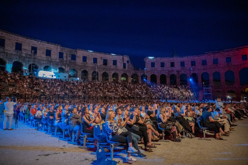 Na pozornici Arene hrvatsku himnu izveo je Damir Urban uz pratnju Luke Tomana na gitari, a brojni iz publike pridružili su im se pjevajući s njima himnu Istarske županije “Krasna zemljo, Istro mila”. Članovi Saveza udruga antifašista Istre podigli su zastave Hrvatske i Istarske županije.