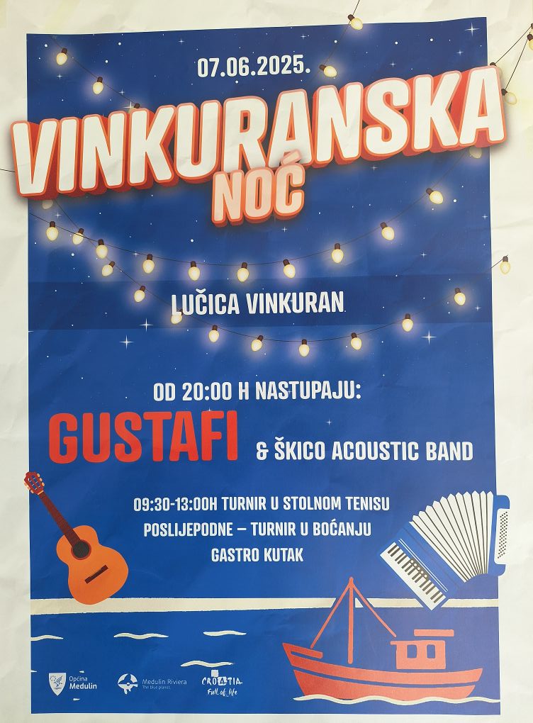 Proslava Vinkuranske noći je ove subote 7. lipnja 2025. čime se otvara i ljetna sezona mjesnih fešti, a u programu vas očekuje: