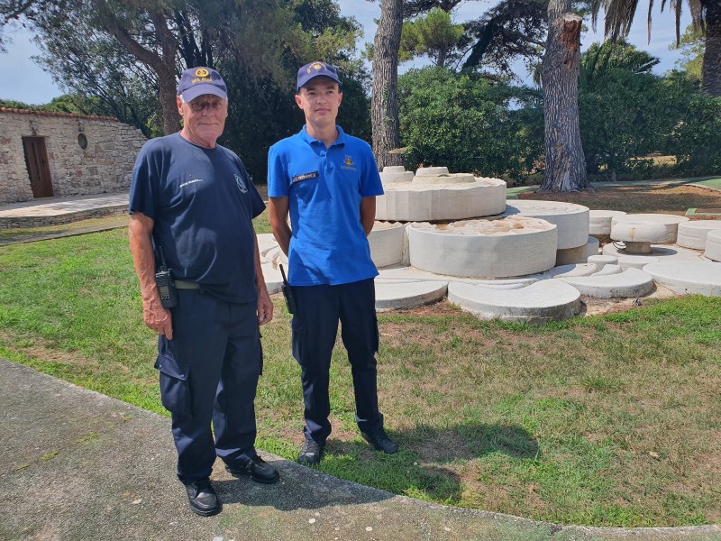 Na otoku Mali Brijun na dislokaciji se nalaze Kristijan Sminderovac i Veljko Podravac iz DVD-a Željezničar. I dok je Podravcu ovo prvi susret s ovim otokom, Sminderovcu je ova lokacija poznata s prijašnjih dislokacija: "Ovdje je dosta mirno. Naš je glavni zadatak usmjeren prema motrenju otoka, kako po pitanju toga da nitko na njega ne pristaje ili se sidri u blizini bez odobrenja, tako i po pitanju održavanja sigurnosti". Dodaje kako najviše posla imaju dok se održavaju predstave Teatra Ulysses jer tada brinu da se gledatelji predstave pridržavaju svih mjera sigurnosti koje su na otoku propisane. "Kod većih predstava, ako dolazi i veći broj gledatelja, u pomoć nam dolaze po dvojica kolege s velikog Brijuna. No, uglavnom smo kolega i ja sami na ovoj pomalo robinzonskoj dislokaciji", zaključuje. Naime, njihov je smještaj skroman, a društvo im prave životinje koje su ovdje praktički udomaćene. A da je tome tako, potvrdili su i jeleni lopatari koji bez ikakvog straha prilaze rijetkim posjetiteljima otoka.