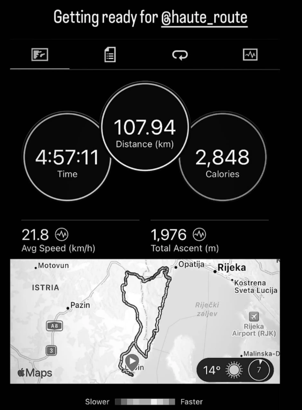 Na društvenim mrežama pohvalio se kako je u ponedjeljak odvozio turu na Učki te prešao 108 kilometara, a sve zbog priprema za Haute Route, najprestižniju višednevnu biciklističku turu za bicikliste amatere.