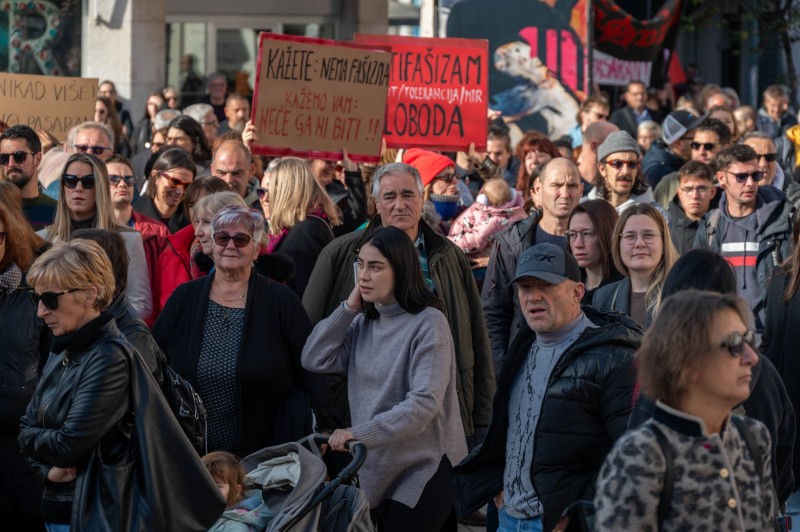 Uz zvukove antifašističkih pjesama i poruke na transparentima koje nisu ostavljale prostora dvojbama „Ne fašizmu“ povorka je prošla gradom, a Narodni trg bio je popunjen do posljednjeg mjesta, dok se mnoštvo prelijevalo i u Flanatičku ulicu.