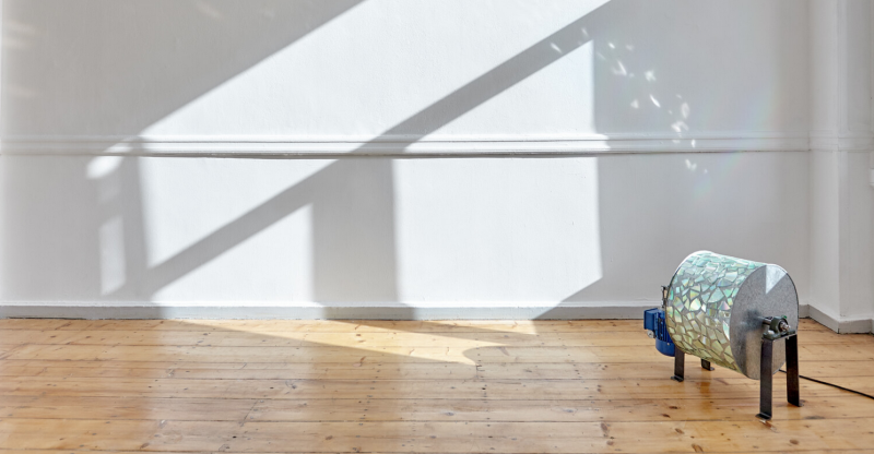 Data Storage of a True Spectrum sastoji se od krhotina kompaktnih diskova koje se okreću na motoriziranoj osi, lomeći zrake sunčeve svjetlosti koje se raspršuju po zidu galerije.