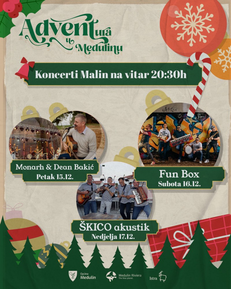 U duhu blagdanskog raspoloženja, s veseljem vas pozivamo da se pridružite božićnom užitku u grijanom šator kod Malina na vitar ovog vikenda. Adventske kućice, epicentar gastronomske ponude hrane i pića lokalnih ugostitelja, otvaraju svoja vrata već u 16:00 sati.