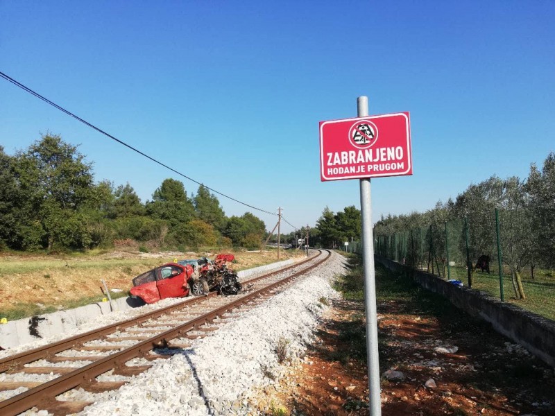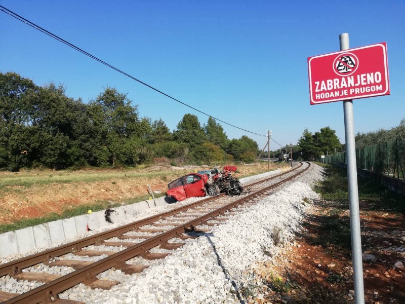 Danas popodne na pruzi iznad Konzuma (ex. Mercatora), na prijelazu bez rampe, vlak je pokupio osobno vozilo pulskih registarskih tablica u kojem su bili vozač i njegovo malodobno dijete. Vlak je vozilo zakačio za prednji dio te ga je vukao tridesetak metara, a na sreću vozač i dijete su neozlijeđeni.
