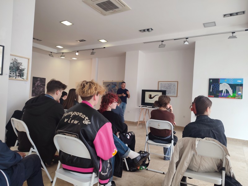 Predavanje vodi akademski slikar Igor Gustini, a u sklopu projekta HDLU-a (Hrvatskog društva likovnih umjetnika) Istre " Edukacija mladih".
