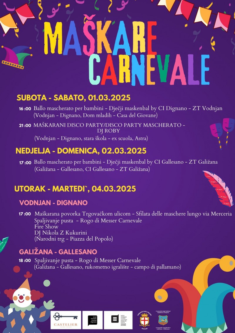 U nedjelju, 2. ožujka, na Dječji maskenbal poziva Zajednica Talijana Galižana. Start je u 17.00 sati.