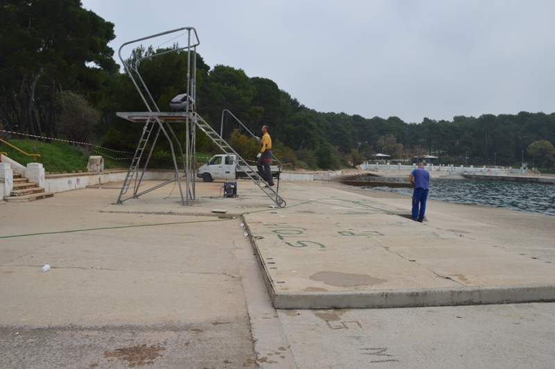 U sklopu radova pristupit će se korekciji cjelokupne plohe sunčališta tako što će se ukloniti ploče s nadvišenim podestima na kojima se nalazi platforma za spasioce i dva podesta za tuševe, te će se ukloniti slivne rešetke. Potom će se postaviti nova ploča bez nadvišenja u kontinuiranom padu prema moru.
