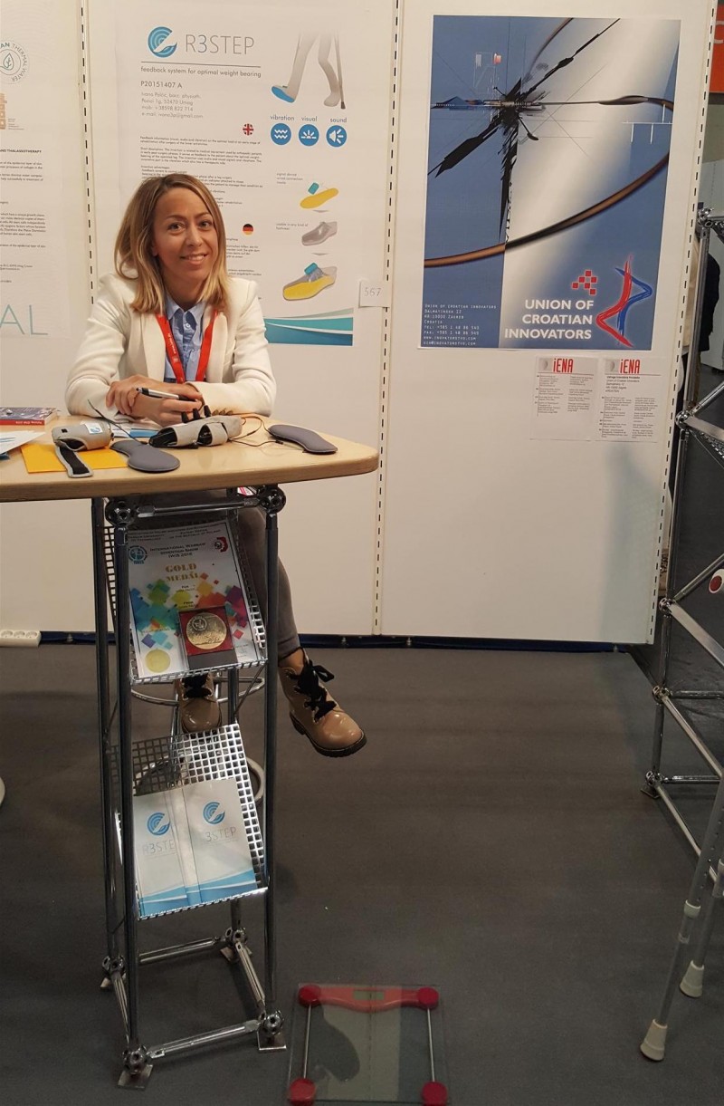 Međunarodni ocjenjivački sud izum Ivane Palčić iz Umaga nagradio je srebrnom medaljom u toj jednoj od najbrojnijoj klasi izloženih inovacija. Izum spada u područje medicinske opreme koja se koristi kod ortopedskih bolesnika u ranoj postoperacijskoj fazi nakon operacije donjeg ekstremiteta. Služi kao feedback informacija o optimalnom opterećenju. Metoda koja se danas koristi: pacijent stane na podnu vagu i pokuša upamtiti opterećenje koje se od njega traži. To je subjektivan i neprecizan način doziranja opterećenja. Ovaj izum nudi jednostavan, precizan i kontroliran način doziranja opterećenja. Sastoji se od uloška sa senzorima pritiska i pokazivača koji se ksira na obuću. Koristi se u kliničkim uvjetima i u kućnom okruženju za motiviranje pacijenta na što bolju izvedbu,